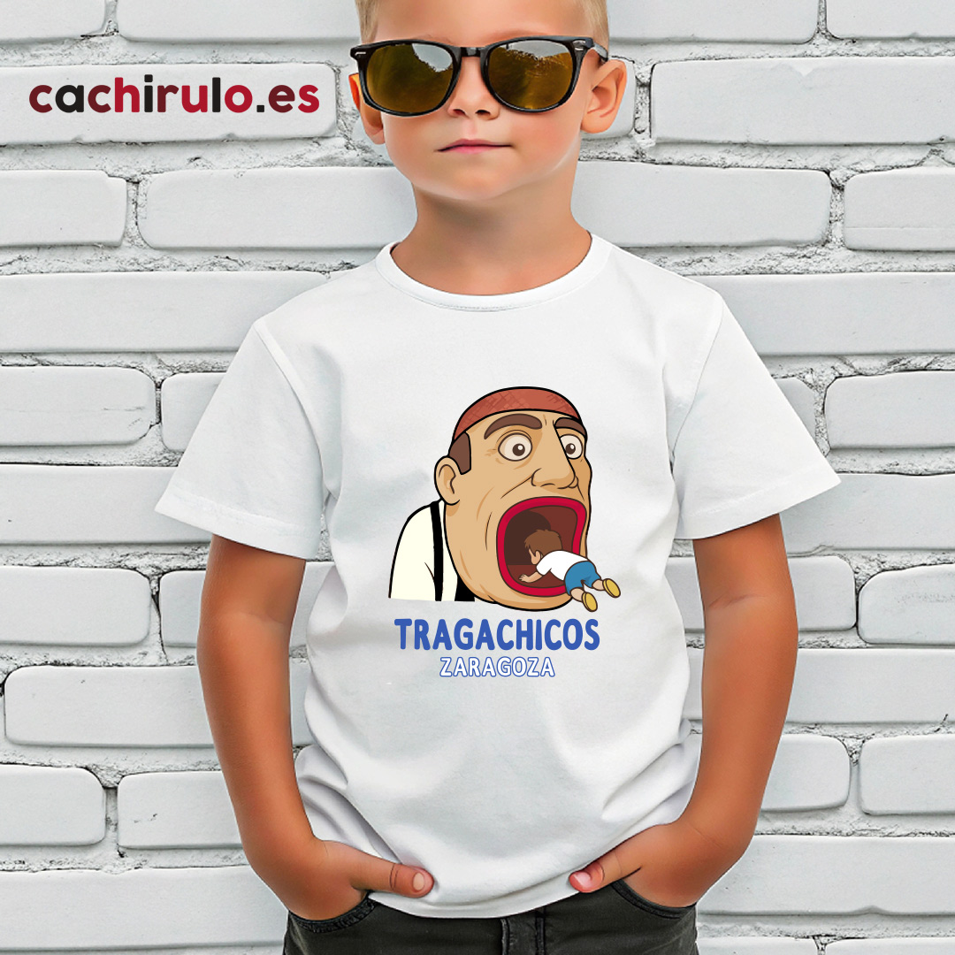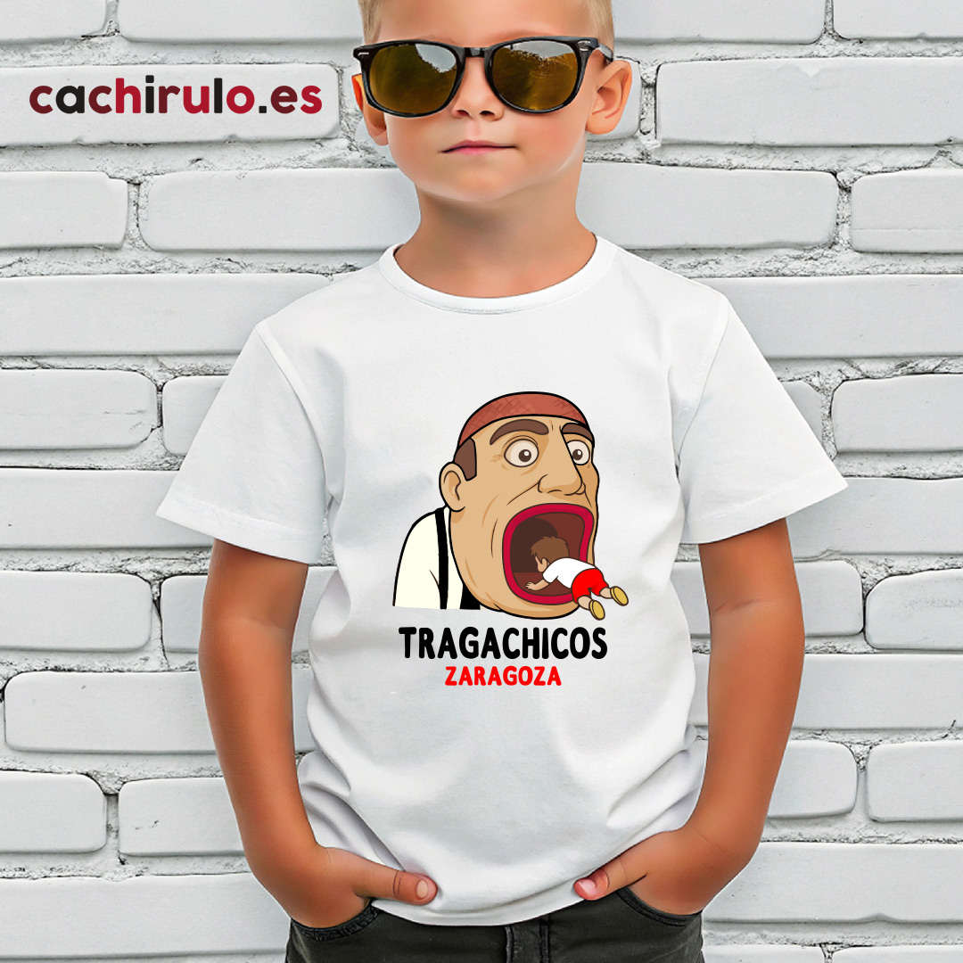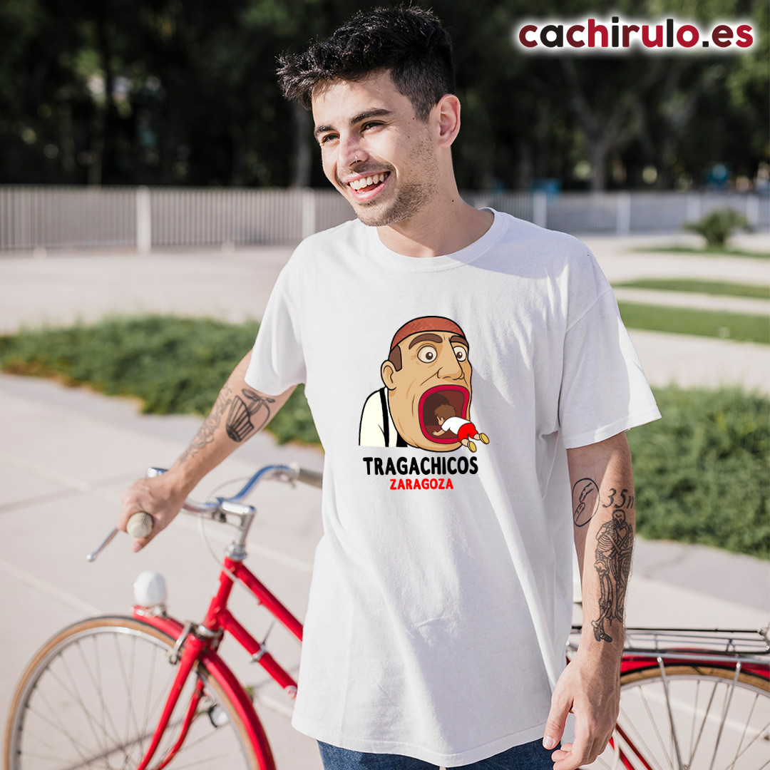 El Tragachicos, uno de los personajes más queridos y emblemáticos de las Fiestas del Pilar, llega en exclusiva a Cachirulo.es convertido en camiseta.